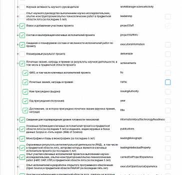 - Управление качеством вводимых данных в конкурсных заявках.